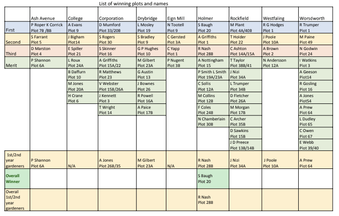 ● Best (1st/2nd year) gardener across all Hereford Allotments